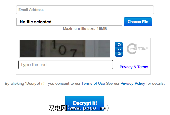 然后将其上传到DecryptCryptoLocker网站。然后将处理该文件,并(希望)返回与该文件关联的私钥,然后将其通过电子邮件发送给您。
