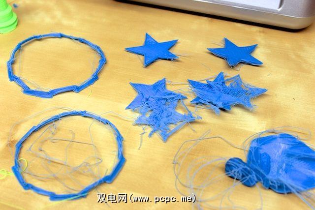 不幸的是,在ABS中打印是很多比PLA难。直径超过1.5英寸的任何物体最终都会发生明显的翘曲-向上弯曲,以至于打印头在某个时候会卡在其上并将打印件推下。这是我前三次使用ABS进行打印的尝试的结果,这些打印大部分变成了霓虹灯蓝色的塑料细面条。