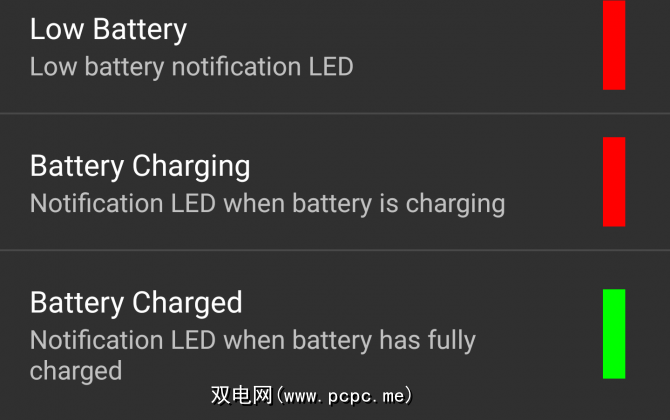 在这些设置中,您会发现典型的绿色“电池已充电" LED,手机正在充电时显示的红色LED以及闪烁的红色电池电量不足时,LED指示灯会亮起。
