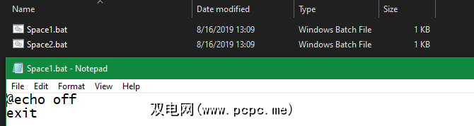 @echo offexit此后,转到文件>另存为。在保存对话框中,为文件命名以 .BAT 结尾。如果要创建多个空格,请复制,粘贴和重命名文件,以便有几个名为 Space1.bat , Space2.bat 等。