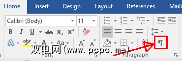 转到首页标签。在“段落"部分中,找到段落符号并将其选中。