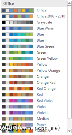 选择了主题后,您可以使用一种预先设计的配色方案来改变文档的美观度,或自己设计。