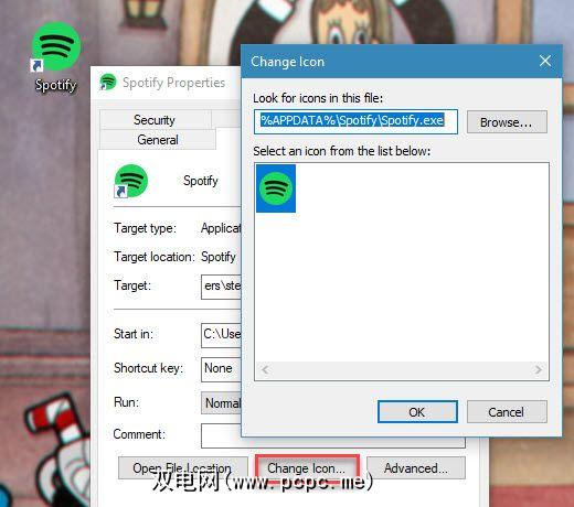 您可以将程序快捷方式的图标更改为其他所需的图标。只需右键单击它并选择属性,然后单击更改图标按钮以选择一个新的。有关更多信息,请参见我们的自定义Windows图标指南。