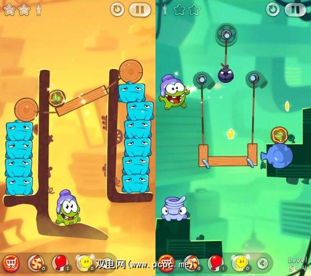 以正确的顺序剪切绳索也很重要,因此您可以收集关卡中的所有星星。糖果或Om Nom触摸它们即可抓住星星。还有其他要收集的元素,例如解锁秘密等级的三叶草。