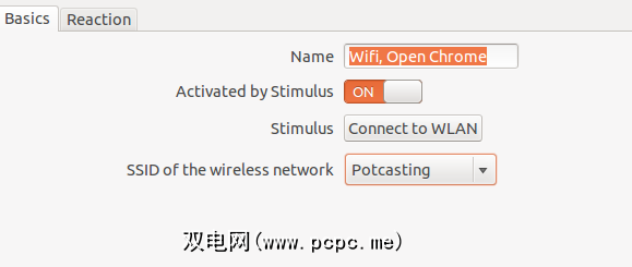 解释墨鱼的最佳方法是尝试一些事情。当我连接到Internet时,我要做的第一件事就是打开Web浏览器,那么为什么不使用Cuttlefish来自动化该过程呢?我开始墨鱼并创建新的反射。我启用刺激激活并选择刺激: