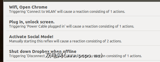 您已经听说过:每一个动作都有相等和相反的反应。乌贼并非完全基于该原理,而是围绕触发动作的刺激而建立。您可以选择一种刺激措施(例如,连接到某个无线网络)并对其做出反应(例如,打开Web浏览器)。这些配对称为反射,通过一些创造力,它们可以节省大量时间。反射可以执行的动作数量没有限制,这意味着任何一种刺激都可以触发多个同时执行的动作。