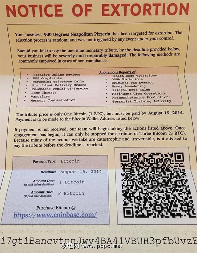 最近,网络勒索被迫关闭上个月,一家名为900度那不勒斯比萨店的比萨餐厅在他们的邮件中收到了赎金通知。在其中,我们鼓励他们在2个月的期限内向匿名地址支付1比特币(约合625美元),否则他们将成为“负面在线评论",“电话拒绝服务",“更好"的目标商业局抱怨",甚至“炸弹威胁"。