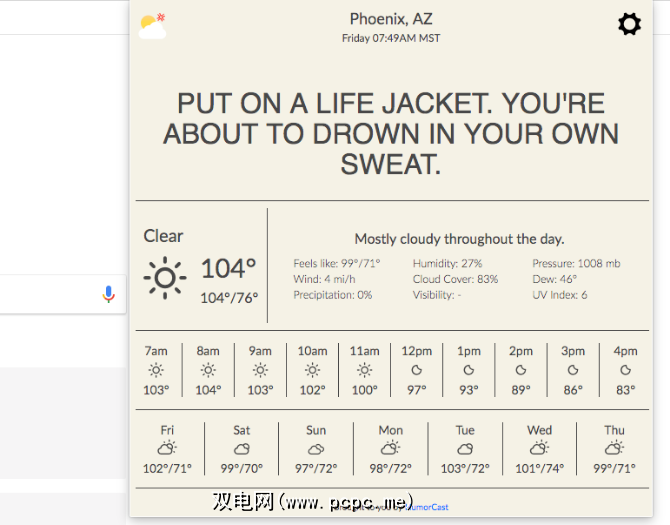 3。 HumorCast(Chrome,Android,iOS):浏览器中的天气