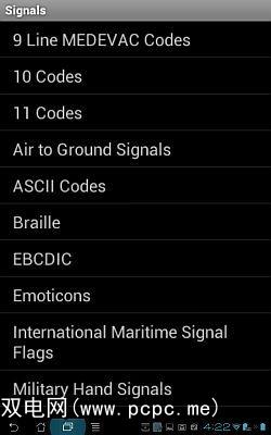 信号基本上是紧急代码和信号的目录,您可能需要知道自己是否迷路或遇到某种情况时需要知道一些信息像摩尔斯电码。