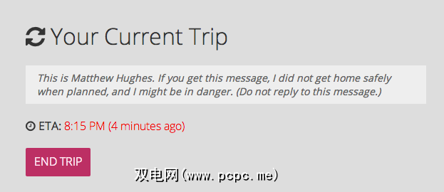 如果您无法准时返回,它将代表您向指定的紧急联系人发送消息。请注意,这非常血腥戏剧性。还值得注意的是,如果您的手机电池电量耗尽,无论如何它将把文本发送给您的紧急联系人。
