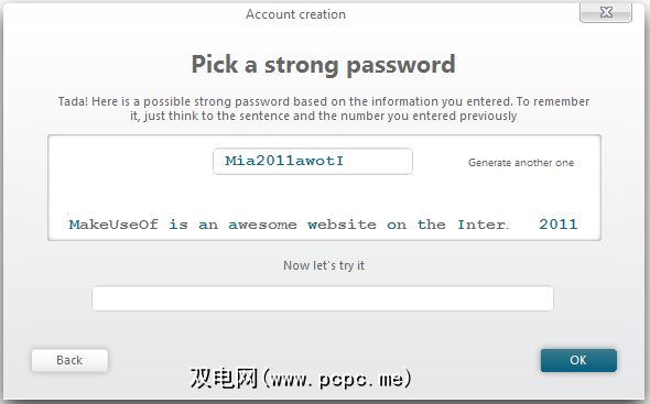 Dashlane可以帮助您在设置密码时创建一个强大的主密码。提供一个句子和年份,它将帮助您生成密码。