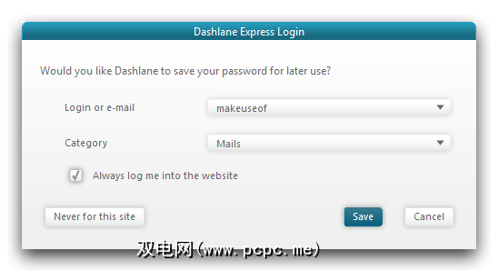 登录网站和Dashlane上的帐户会注意到。您可以保存密码以备后用,并让Dashlane将来自动登录。
