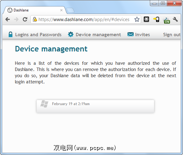 如果启用同步,则还可以从Dashlane网站上查看数据并管理允许的设备。
