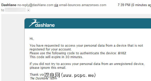 从另一台计算机登录Dashlane时, Dashlane通过电子邮件或SMS消息向您发送代码。这是一种非常有效的两因素身份验证方法。其他密码管理器(例如LastPass)提供了多种两因素身份验证方法,但是有权访问该帐户电子邮件地址的人都可以删除它们。这种方法简化了流程,并且不会降低安全性。