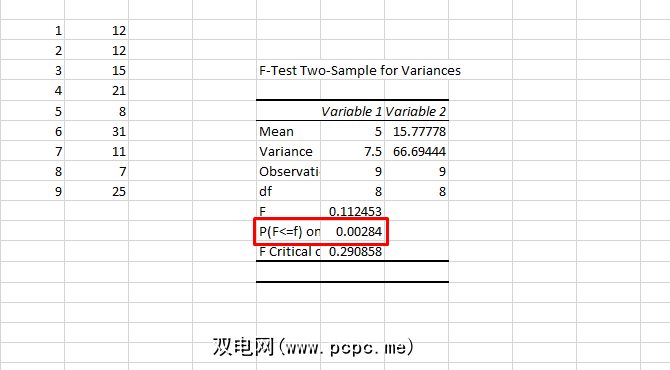 要测试两个样本的方差是否相等,您需要运行F检验。在“分析工具"列表中找到 F-检验方差两个样本,选择它,然后单击确定。