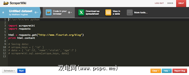 ScraperWiki将自己定位为获取,清理和分析数据的场所,并且可以实现上述所有功能。以其最简单的形式,它使您–用户–可以在其中编写从源中检索数据的代码,将其转换为易于分析的格式的工具以及可以保存以供以后可视化的工具–您可以在其中