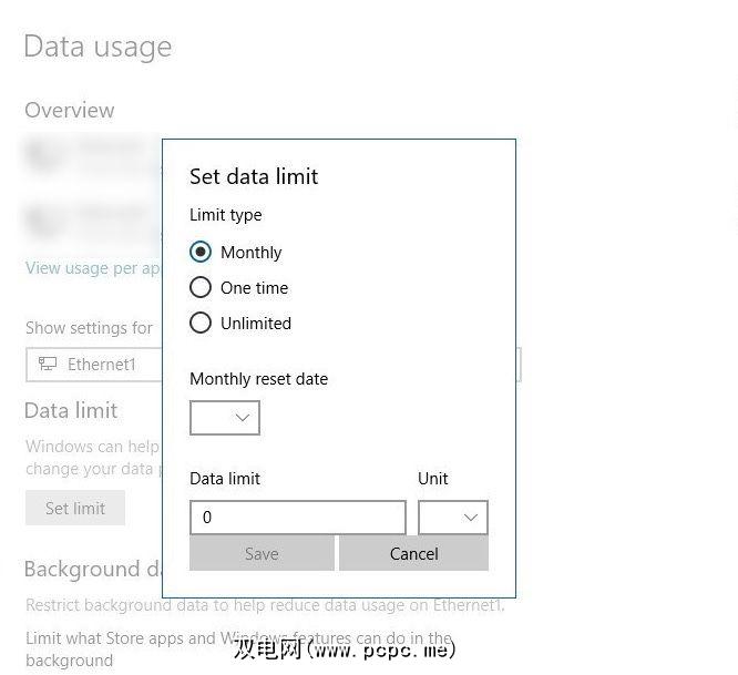 In earlier versions of Windows 10, you could only set data usage limits for mobile networks. Now you can configure Wi-Fi, Ethernet, and mobile connections with specific data limits and place data restrictions in the background: