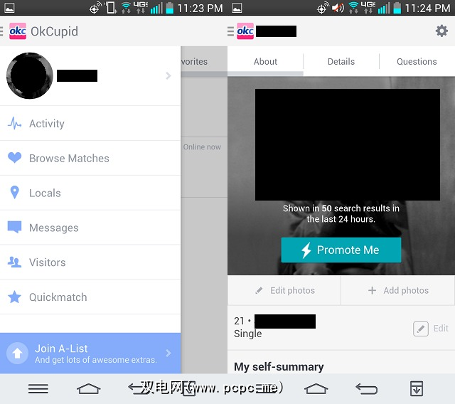 UI的某些方面非常挑剔:某些屏幕元素很小,即使在我们LG G2的屏幕相对宽敞的情况下,“后退"按钮的行为似乎也令人讨厌,通常试图退出该应用程序,而不是使我们返回到上次查看的页面。除了这些小问题,OkCupid应用程序设计合理,并且可以大量使用。