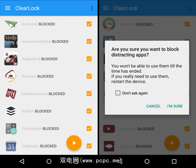 ClearLock启动后,除已批准的应用程序外,它将不允许访问任何其他应用程序或从中发出通知。这也包括电话和消息。如果是紧急情况,并且您需要在会话过程中访问手机,则可以重新启动并照常使用它。但这就是微小的自律很重要的地方。问自己,这真的很紧急吗?