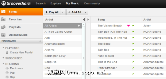 Grooveshark有很多让人喜欢的地方。您可以播放任何想要的歌曲,包括很多其他流媒体服务未提供的内容。如果找不到特定的歌曲,而是将其存储在计算机上,则可以上传它-这意味着Grooveshark是一种音乐YouTube。