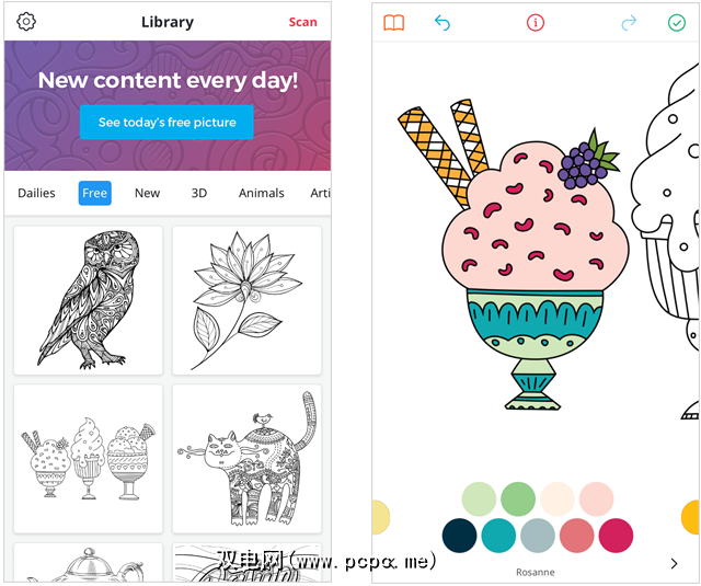 Colorfy提供了许多图像选项,其中包括生肖,花园,猫,和特殊日期。与Recolor相似,此应用程序可让您使用已存储在设备上的相机图像将图像着色。