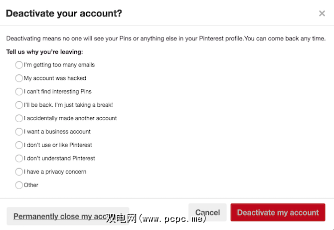 已停止使用Pinterest,但仍在收到其他Pinterest用户与您的内容进行交互的通知吗?关注Pinterest骗局?如果要停用或完全删除Pinterest帐户,请按以下步骤操作。