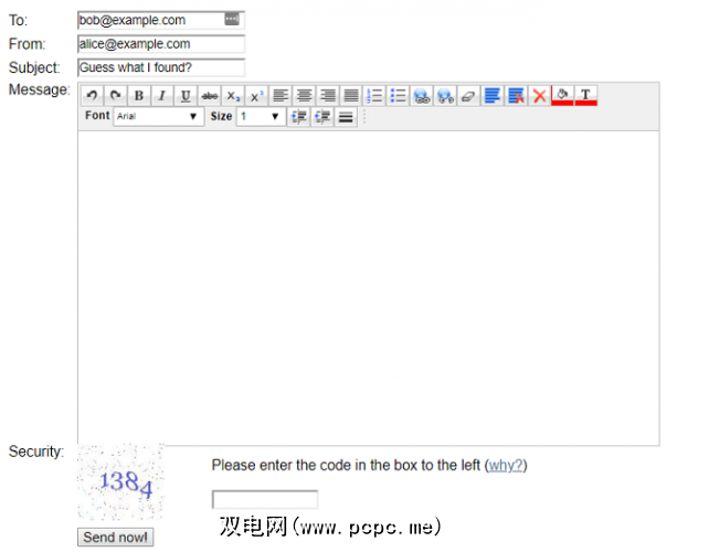 该服务的选项和功能是迄今为止列表中三个站点中最不广泛的。您只能指定收件人的电子邮件,发件人的电子邮件,主题和消息。没有附件,只有标准的纯文本编辑器可用。