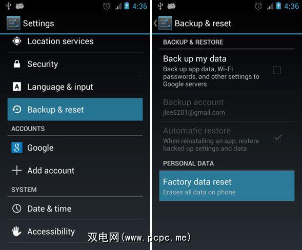 在恢复出厂设置之前,请确保备份所有重要数据。如果不确定如何做,请阅读下一节。此外,在非标准ROM上使用出厂重置可能会导致意外行为。