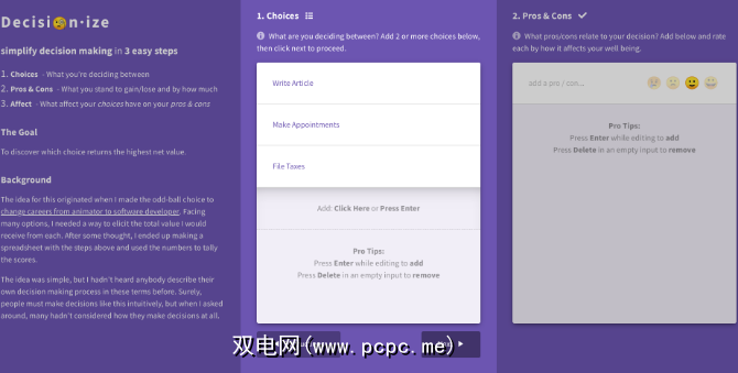 决策瘫痪经常会出现,因为您实际上无法清楚地看到最终结果。 Decisionize将您的选择变成一个方程式,可帮助您实现每个选择可以实现的影响。