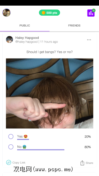 在等待民意调查获得结果时,您可以跳进入公共Pollsify提要,以查看其他人对普通用户群提出的问题。点按即可发表您的意见。不幸的是,没有一个简单的注释框可以从参与者那里获取更多信息。