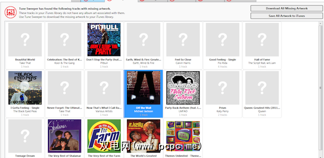 从上面可以看到图片,我的图书馆中的大多数曲目都没有专辑套。解决此问题的过程大部分是自动的,需要我按“下载所有丢失的艺术品"。