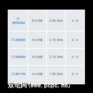 例如,Core i7-2630QM的处理器号为2630。包装中提供了更多信息。第一个数字代表处理器的生成。自新商标生效以来,当前的英特尔酷睿是第二次迭代。此后的三个数字只是用来告诉您英特尔相对于其他产品在性能方面对处理器的看法。越高,越好。