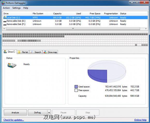 Defraggler很可能是其中最受欢迎的免费碎片整理工具。已经被无数次提及,已经得到了一些主要版本的增强,以表明它们现在功能更强大。当然,Defraggler仍可作为USB驱动器的便携式应用程序使用。