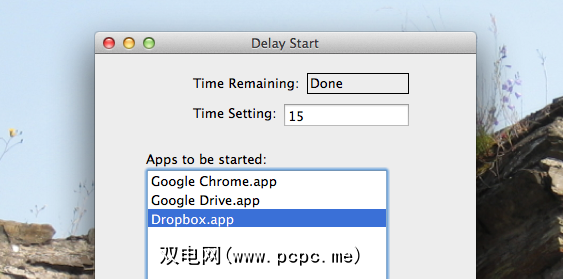 延迟启动是一种具有单一功能的简单Mac应用程序–等待一段时间,然后启动所需的任何应用程序。很简单,但它描述了上述问题。阻止现有的Mac应用启动时启动-然后设置“延迟启动"来启动-在启动后但应用自动加载之前,您会有一段时间。您以秒为单位设置时间,因此,如果要延迟一定的分钟数,请确保将其乘以60。