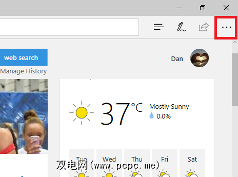 在Edge中,您想要做的所有事情都在“ 设置及其他"菜单中。要加载菜单,请单击“边缘"窗口右上角的三个水平点。