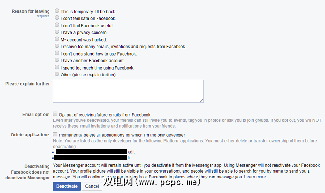 在最终屏幕上,您将需要选择是否要继续接收来自Facebook的电子邮件,以及是否删除自己是唯一开发者的任何Facebook应用程序。 。