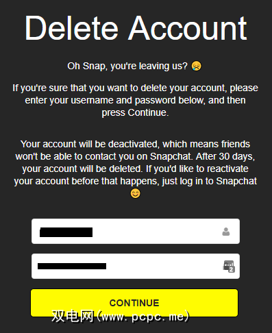 您无法从Android或iOS版本的应用程序删除Snapchat帐户。取而代之的是,您需要启动浏览器并访问Snapchat网站。