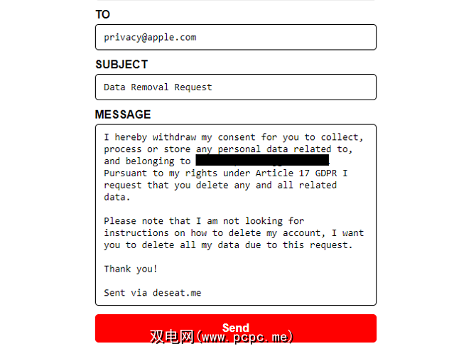选择要删除的帐户时,Deseat.me会生成数据删除请求,该请求将从您的电子邮件地址发送到相关平台。