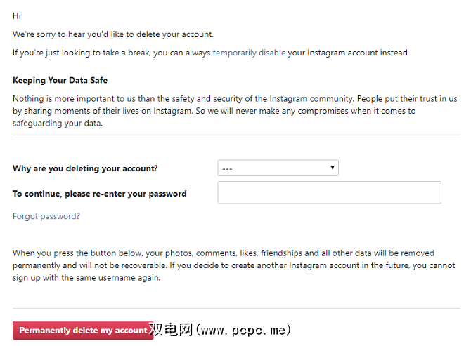 要完全永久删除您的Instagram帐户,您需要通过网络浏览器登录Instagram,并使用删除您的帐户请求链接。然后,您将需要重新输入密码。最后,点击永久删除我的帐户,从平台上删除您的Instagram帐户。