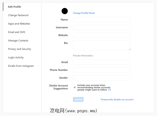 要禁用您的Instagram帐户,转到您的设置菜单,然后选择编辑个人资料。在页面底部,您会看到一个指向暂时禁用我的帐户的链接。