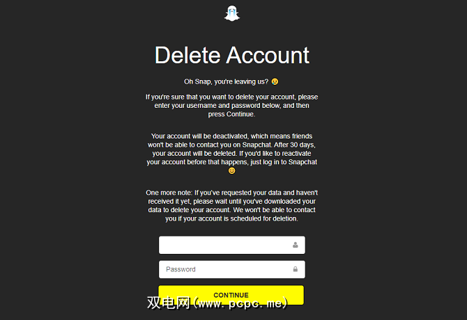 您可以使用Snapchat帐户门户删除Snapchat帐户。该页面允许您管理数据和应用程序,但更重要的是,您可以选择删除帐户。