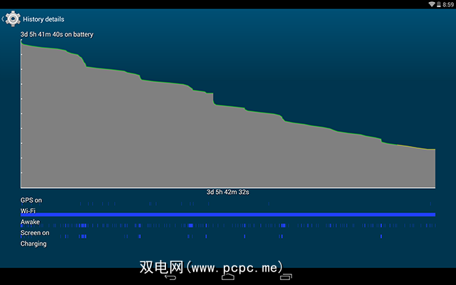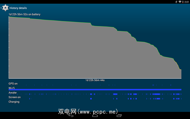 下面,您可以看到我不那么频繁使用它的另一个时间。在三天的时间里,它慢慢耗尽了,因为我主要检查邮件和电子邮件。