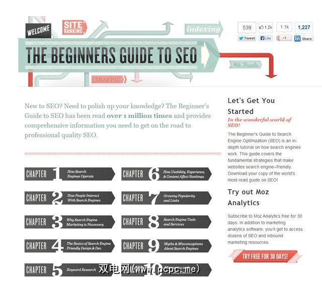Moz于2004年作为SEO咨询公司而成立,即使今天仍是首要目标网站上的搜索引擎知识。除了内容丰富之外,如果您想认真对待指标和搜索引擎排名,它还提供网络营销分析工具。 SEO入门指南是有关搜索引擎工作原理的精巧资源。您可以在线阅读十章,也可以将整个内容下载为PDF文件。 Moz还在Udemy上提供了免费的SEO视频课程。
