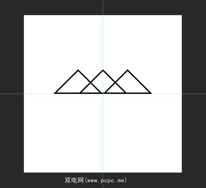 选择另一个副本并对其进行转换,以使其在垂直和水平方向上都增大125%。使用移动工具,对其进行定位,使其底部与其他两个三角形对齐,并且其上角位于中心基准线上。