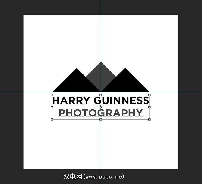 完成实际徽标形状后,是时候添加文本了。使用文本工具(键盘快捷键为 T )在画布上单击某处,然后输入您的公司名称;对我来说,这是哈里·吉尼斯摄影。