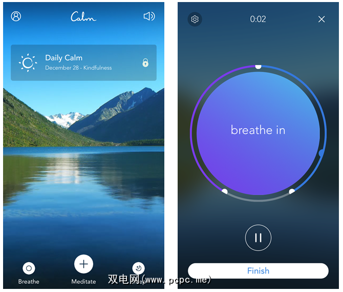 Android和iOS都有一个名为Calm的出色工具。该应用程序提供自然的声音和美丽的场景,以提供完整的放松体验。此外,Calm提供了指导和无指导的课程,以适应您的喜好。