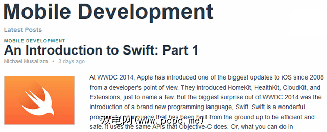您可以根据需要订阅特定类别-例如移动开发部分-并紧跟新趋势,因为它们会提供相关教程。例如,苹果公司最近推出了一种名为Swift的新编程语言,而TutsPlus刚刚在其上开始了一系列教程。