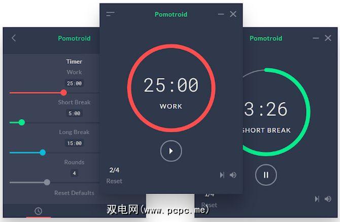 Pomotroid是我见过的最好的台式Pomodoro应用程序。它是完全免费的,没有任何隐藏成本,并且具有华丽的简约设计。按下播放/暂停按钮以启动和停止计时器。红色表示工作时间,绿色表示短暂的休息,蓝色表示较长的休息时间。时间的长度是可自定义的,因此,如果您不希望使用25-5的时间表,可以将其更改为适合您的时间表。