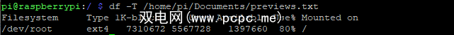 需要知道驱动器上正在使用哪种文件系统类型?使用-T 选项,后跟文件路径。