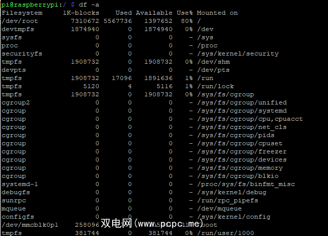 但是,您可以使用 df 显示这些文件系统。只需对-a 开关: